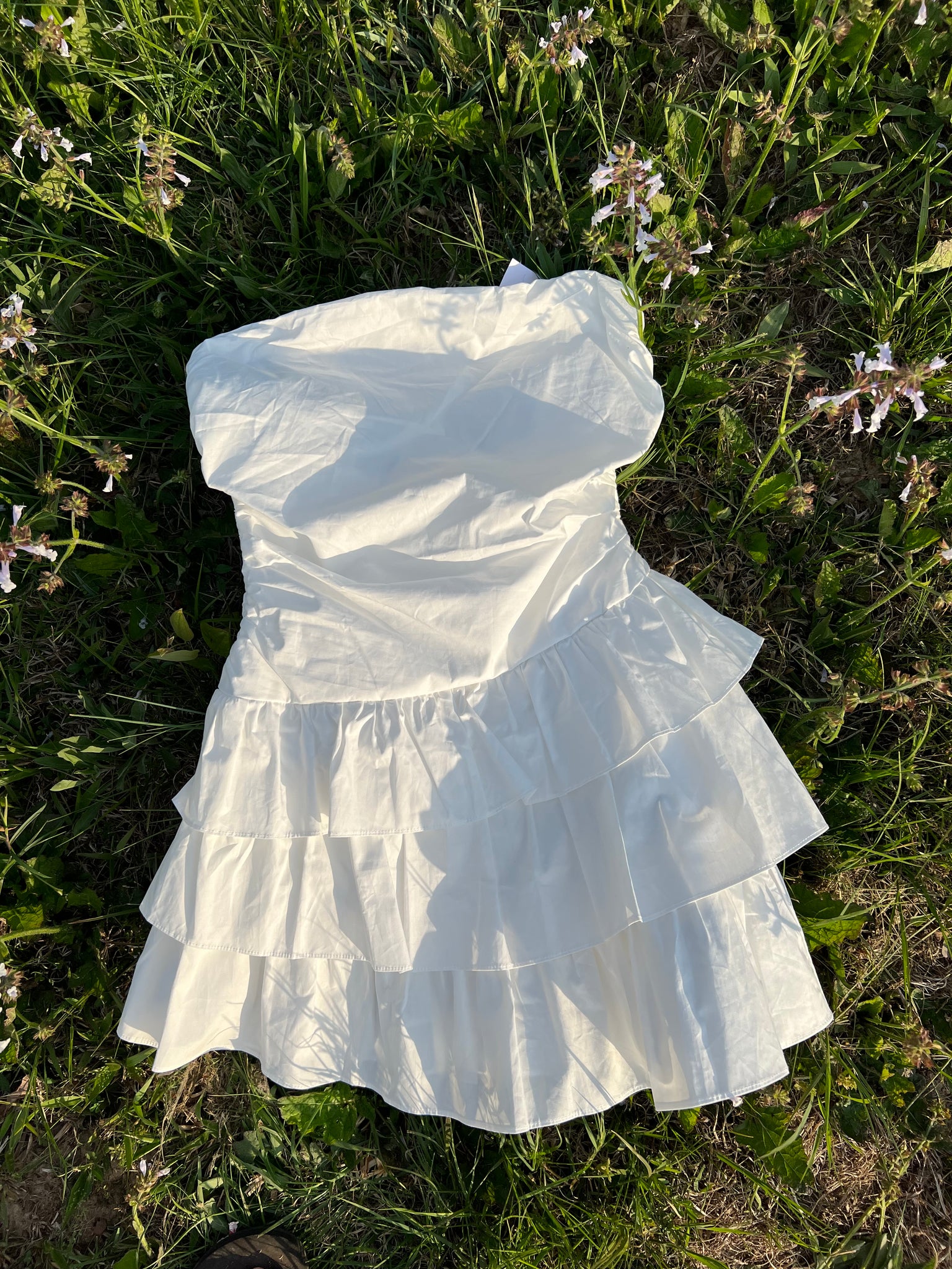 Looks like a dress all around but does have shorts, zipper up the back runs true to size.