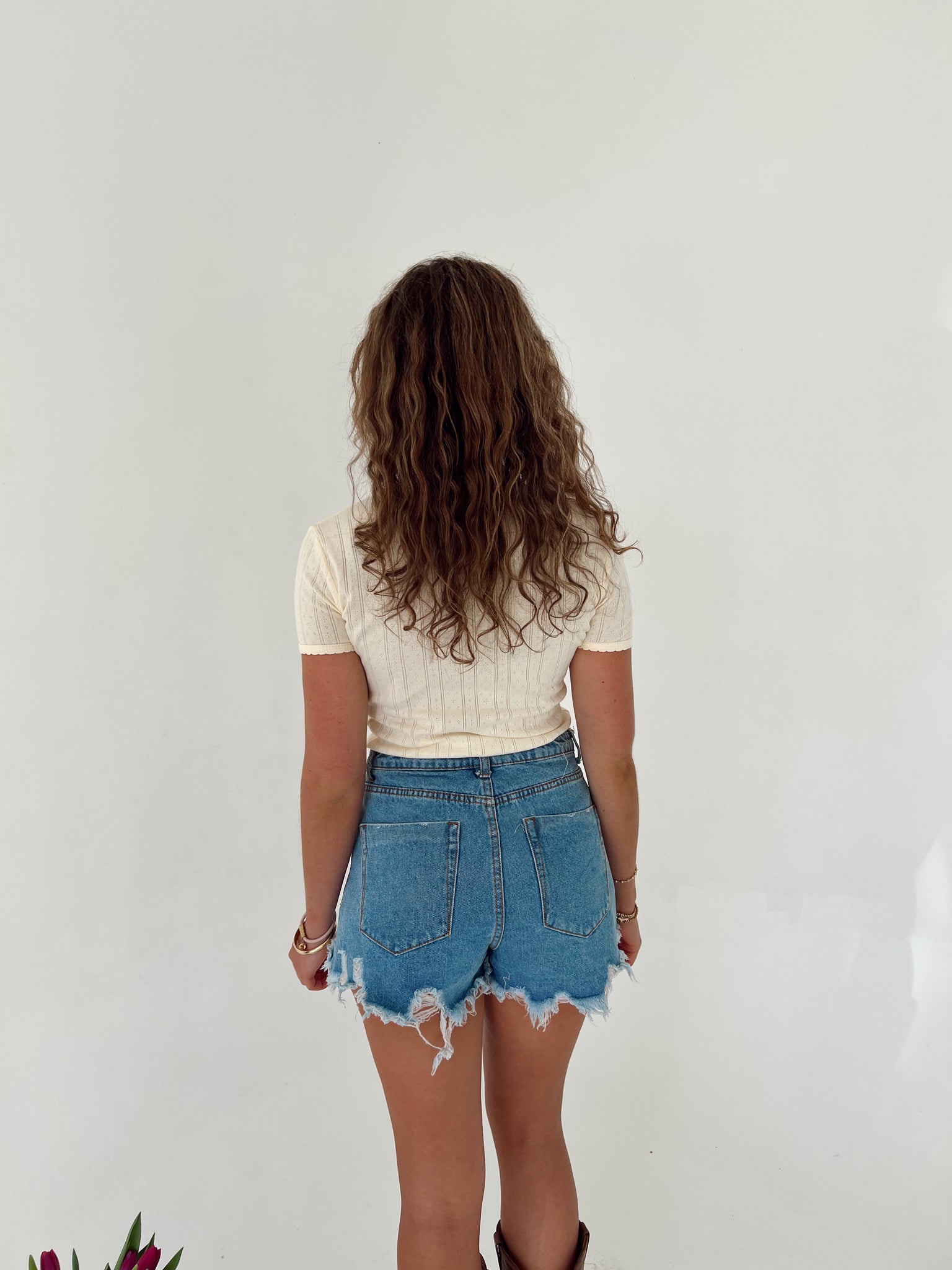 Our Pointelle Short Sleeve Top—the versatile essential that deserves a permanent spot in your closet. Crafted with delicate pointelle detailing, this charming top brings subtle texture and sophistication to any outfit. Whether you're pairing it with jeans, skirts, or trousers, it effortlessly transitions from season to season. True to size and designed for all-day comfort, this dainty piece is the foundation piece you've been searching for. Stock up and discover why everyone's obsessed. 100% cotton.