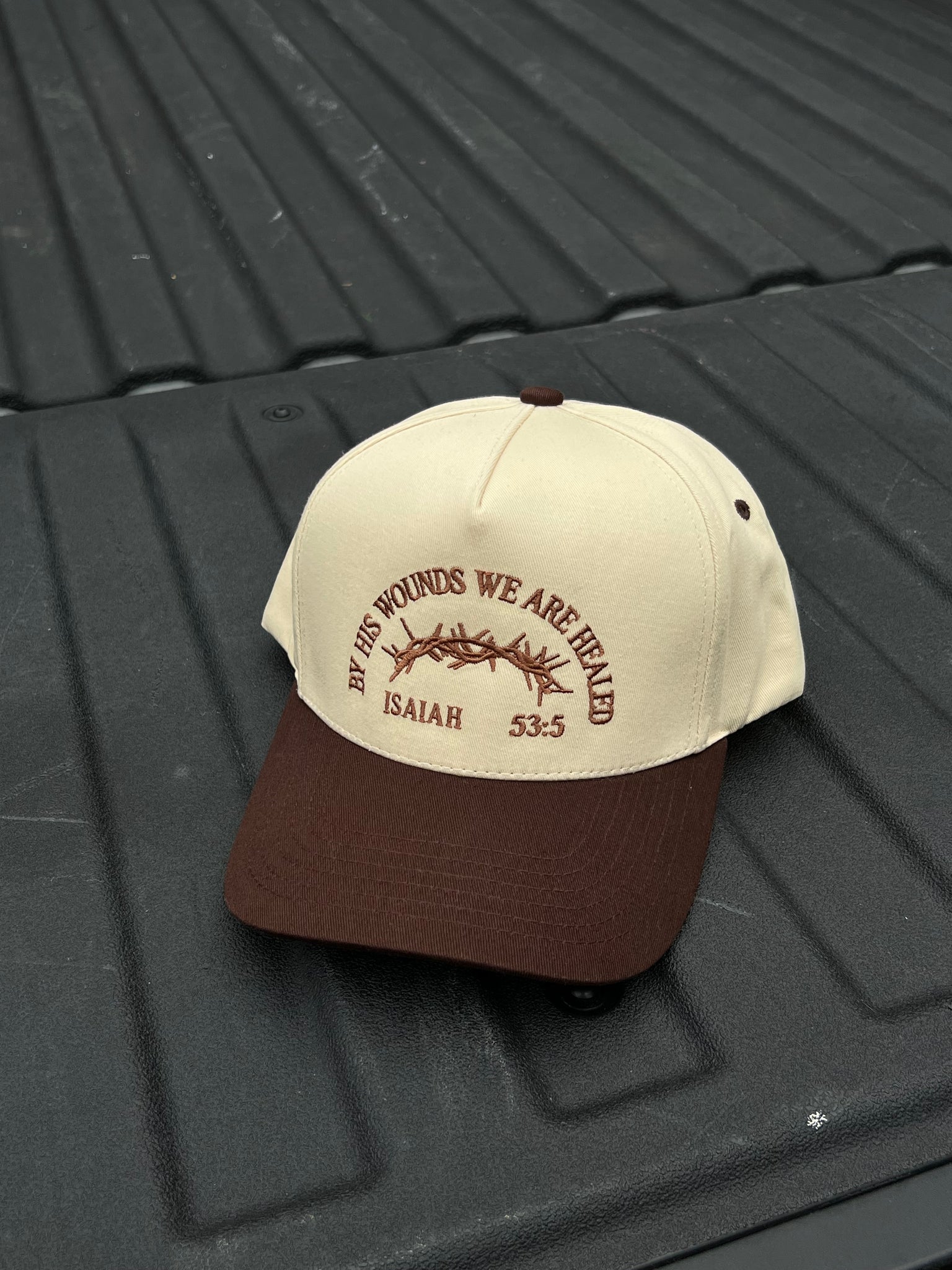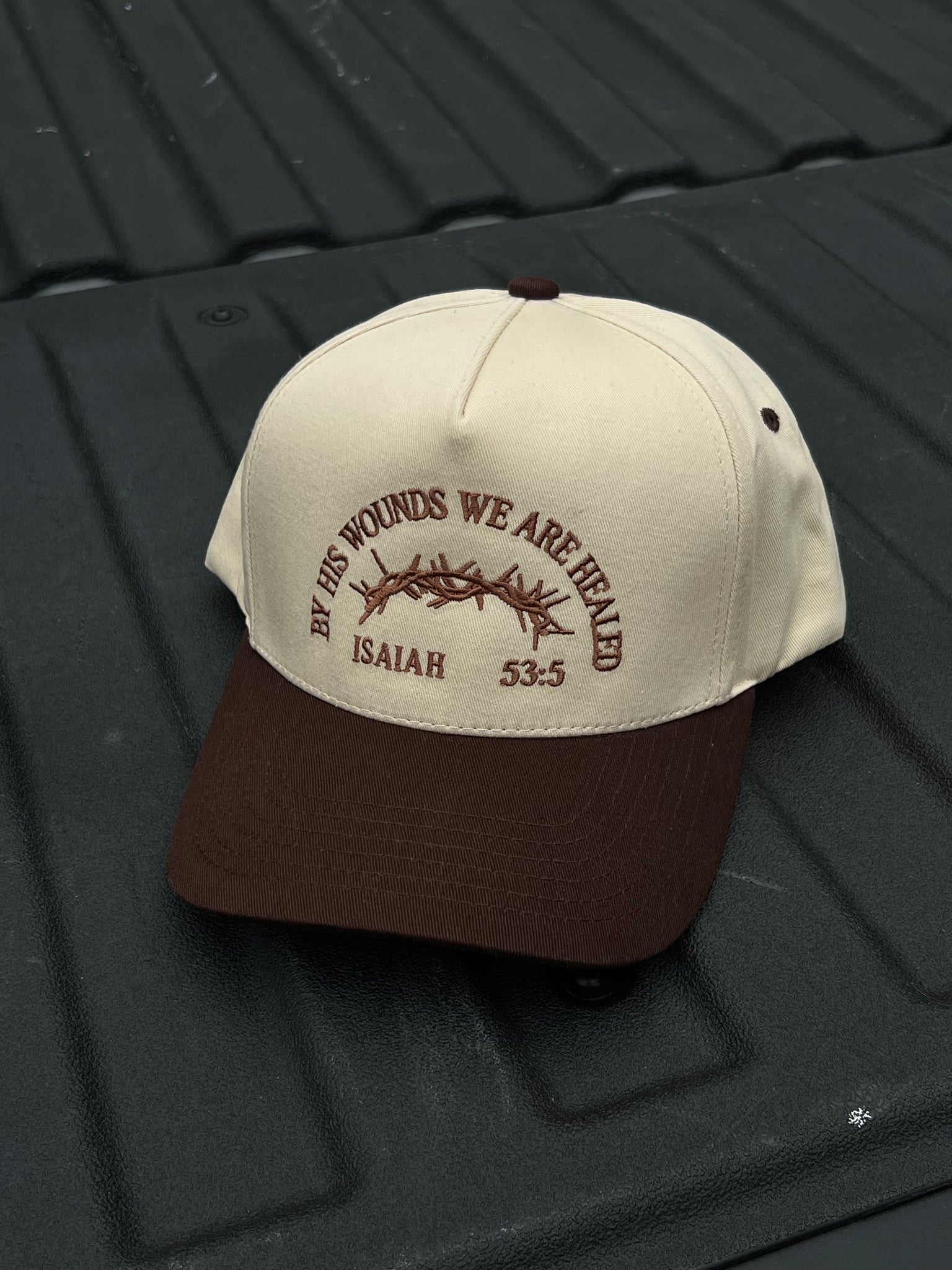 The Brown Faith Trucker Hat features precise brown embroidery stating "by his wounds we are healed," blending thoughtful design with purposeful messaging. This hat offers a subtle yet impactful way to share your faith while complementing your fall wardrobe. Its quality construction ensures comfort and durability, making it an ideal accessory for those who want to express their beliefs with refined style this season.