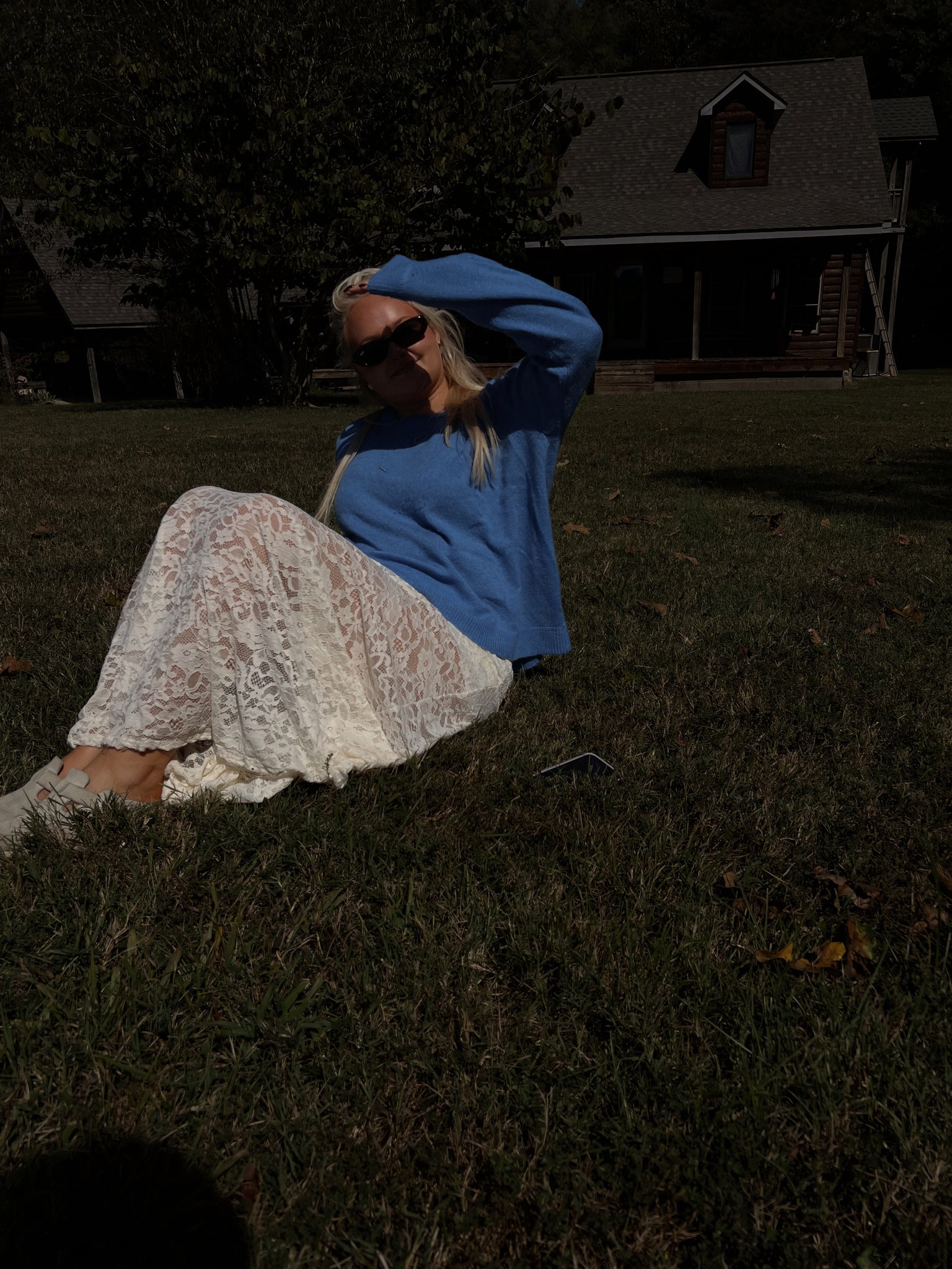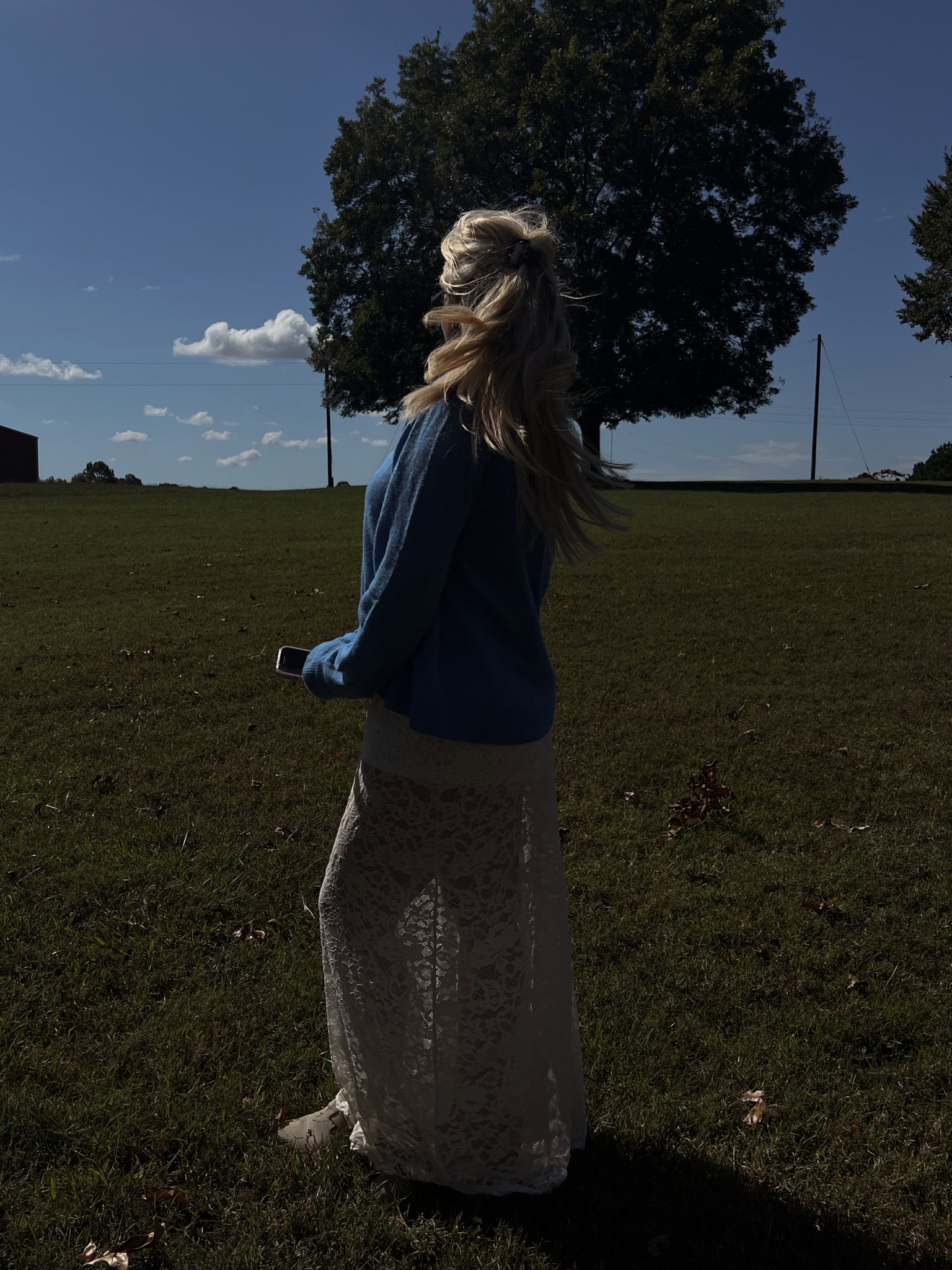 This cream lace maxi skirt features a stunning sheer design with delicate lace detailing, making it a versatile piece for any season. With a stretchy waistband and true-to-size fit, it offers comfort without compromising style. Because it’s see-through, pairing it with skin-tone undergarments or shorts, like Rylee does, ensures a polished look. Perfectly suited for both casual outings and dressier occasions, this skirt adds effortless elegance and charm to your wardrobe.